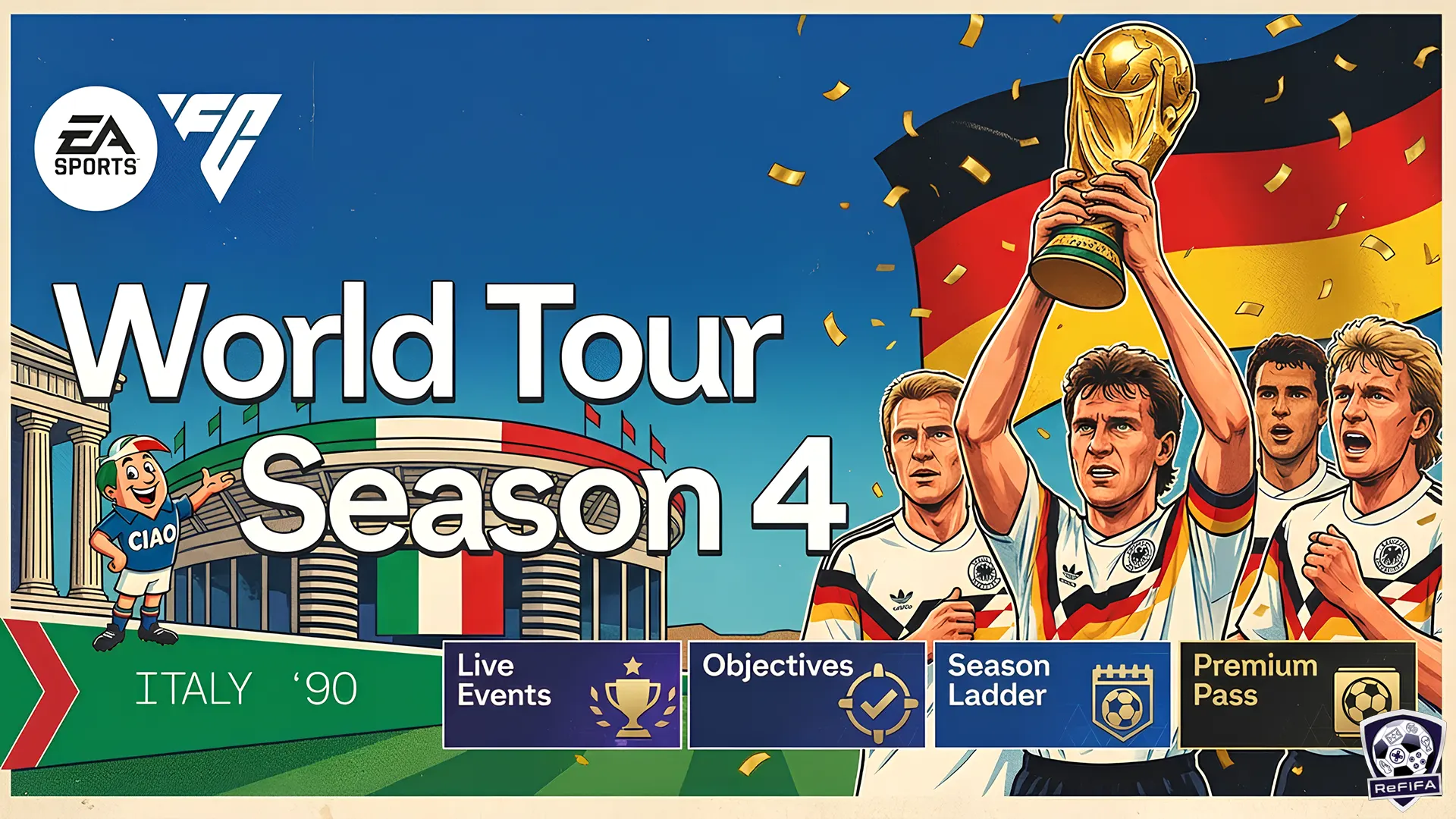Themed around Italy 1990 and Germany’s victorious run, this season mixes historical Player Items and ICONs with modern Live Events and competitive ladders.
