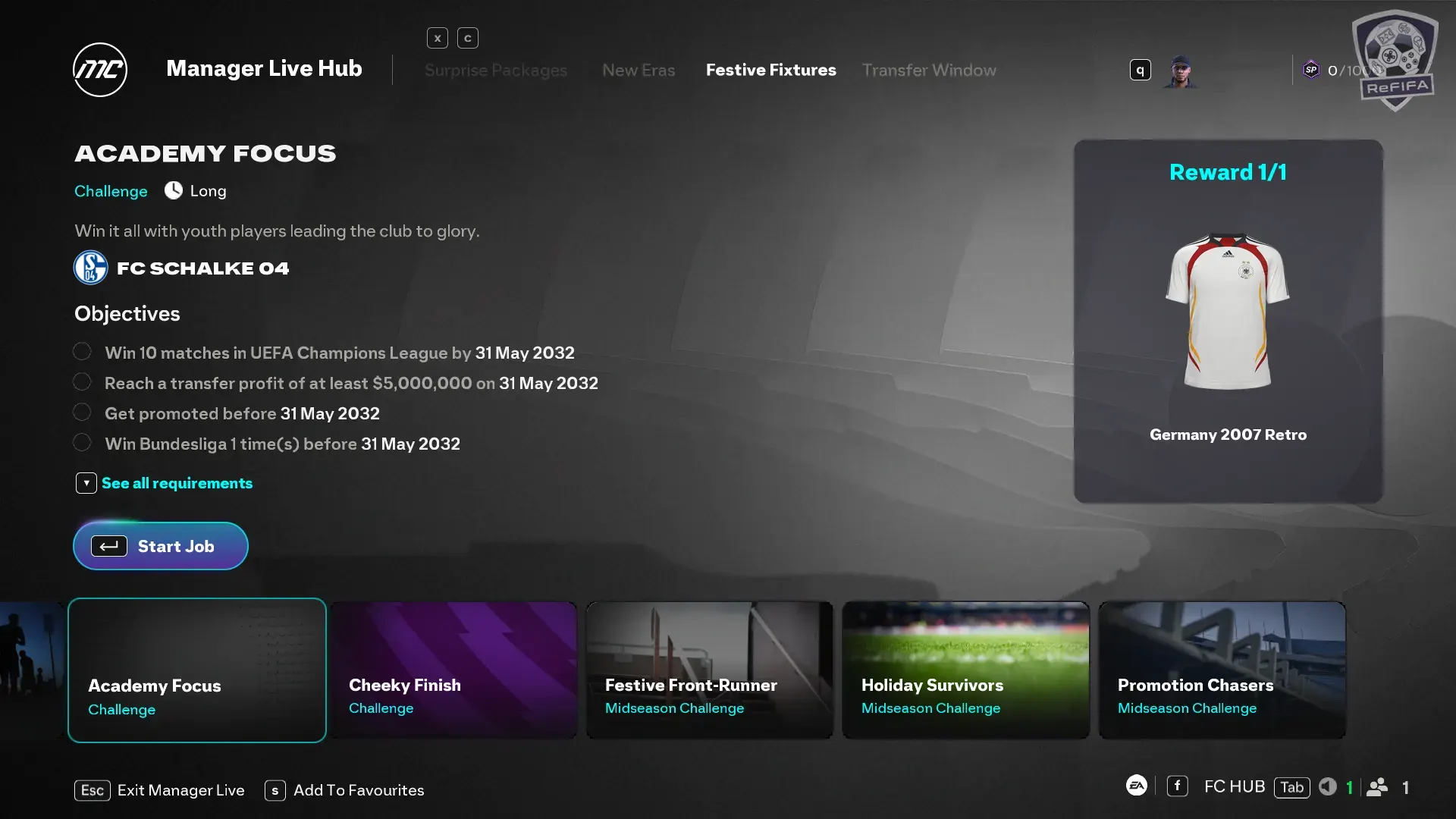 This is a highly specific “Long” challenge that requires you to step into the shoes of a developmental specialist. You must complete this using FC Schalke 04 only.
