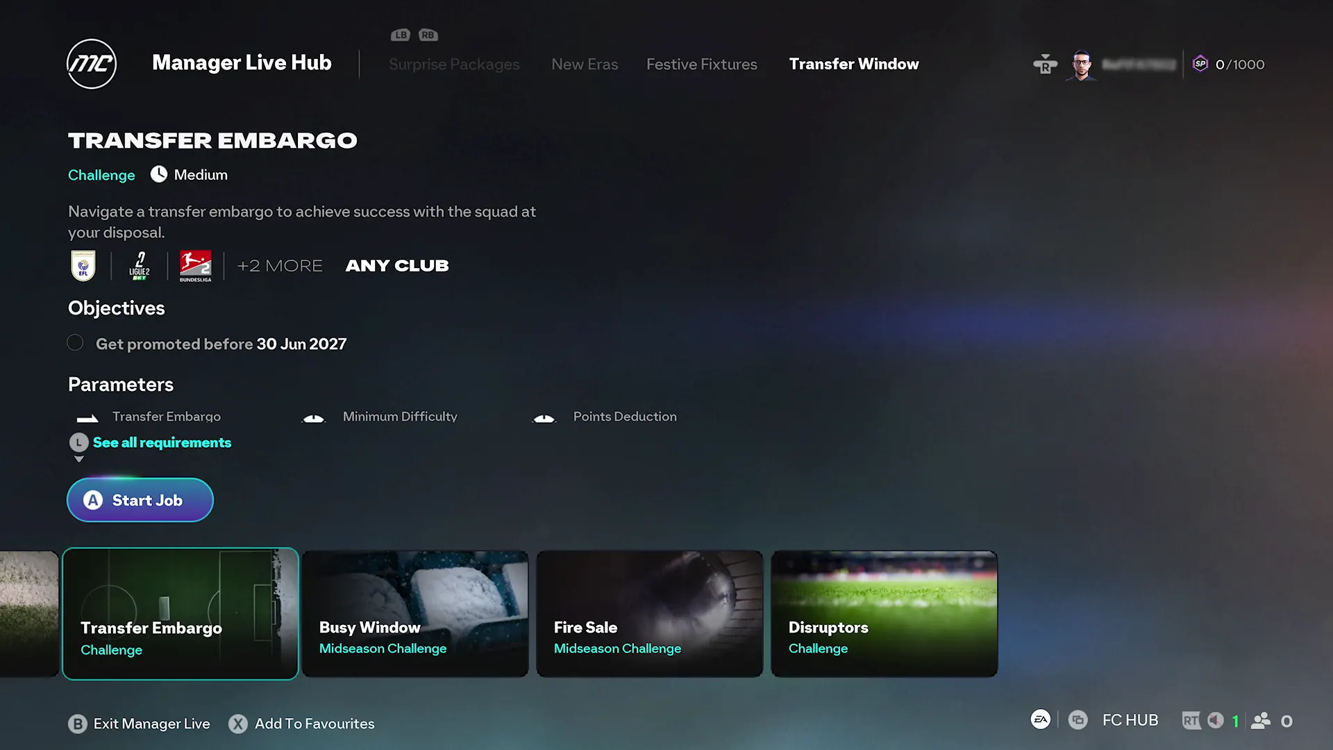 Transfer Embargo: A tougher, survival-style test for clubs in EFL Championship, LaLiga 2, Serie B, Bundesliga 2 and Ligue 2: operate under a transfer embargo and still achieve competitive success with only your existing squad. This challenge is short on market help and long on tactical creativity; it’s perfect for managers who want a pure coaching test.