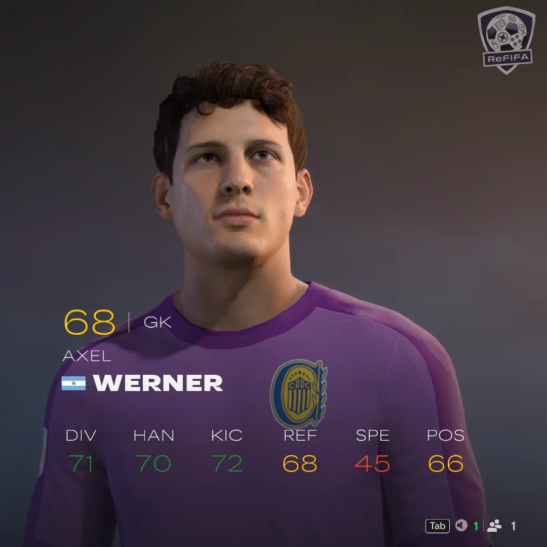 Argentina’s goalkeeper for Rosario Central in Liga Profesional de Fútbol, has an overall rating of 68. Werner’s shot-stopping could shore up defenses, and his new real face enhances the South American league experience.