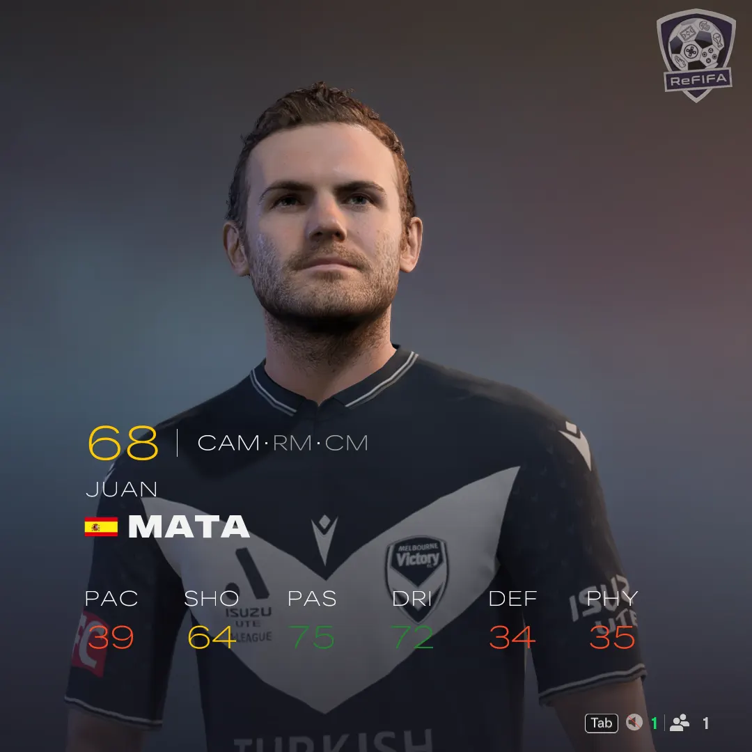 the Spanish attacking midfielder for Melbourne Victory in A-League Men, joins with an overall rating of 68. Mata’s creativity and vision make him a mentor figure in Career Mode, and his real face adds nostalgia for fans of his glory days.