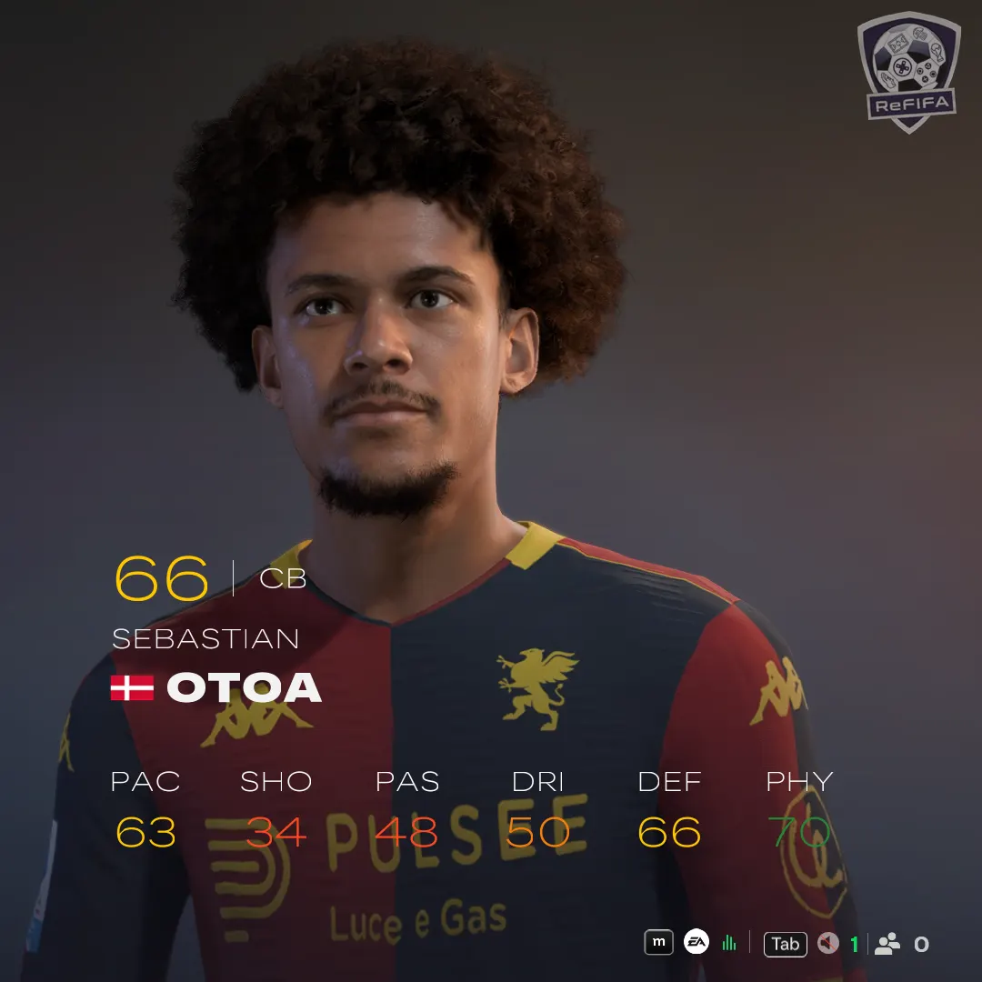 Sebastian Otoa stands out for Genoa in Serie A with an imposing 198 cm frame (OVR 66, POT 74), a profile that’s useful both defensively and on offensive set pieces.