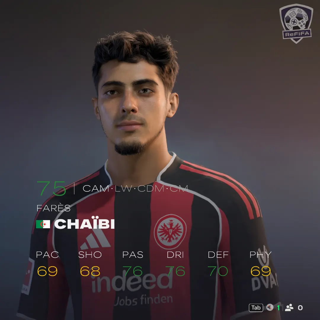 Farès Chaïbi, at 22, offers outstanding versatility for Frankfurt. Whether used as a CAM, LW, or even CDM, his intelligence and work rate stand out.