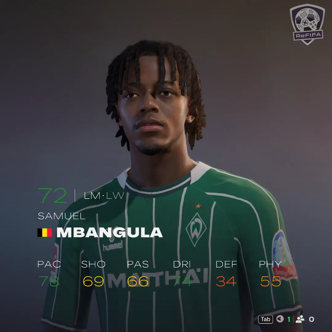 A new name gaining attention is Samuel Mbangula from Werder Bremen. At 21, the wide midfielder has a 72 overall and an impressive 84 potential, suggesting a high ceiling.