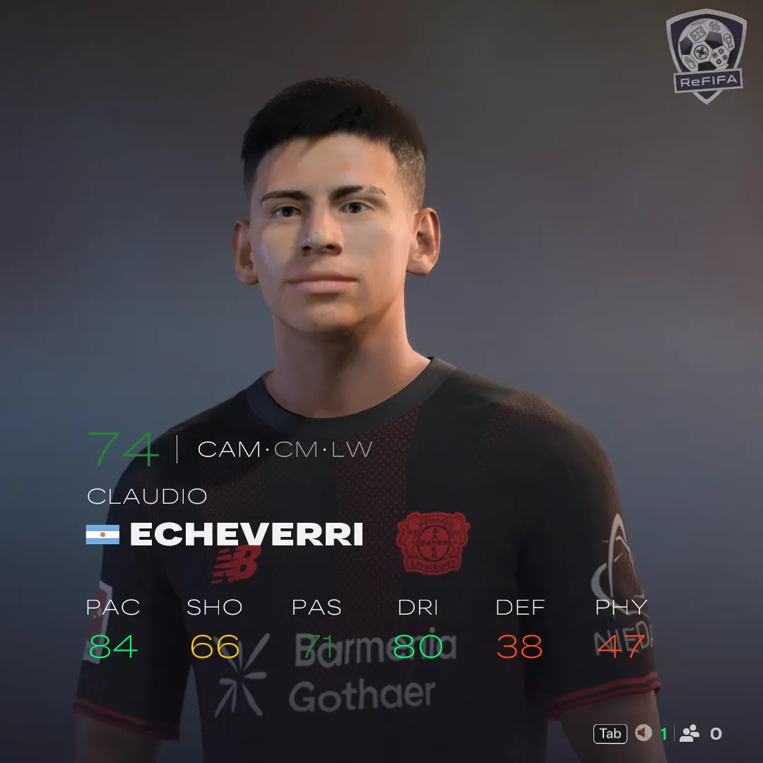 Known for his agility and playmaking, Claudio Echeverri (Bayer 04 Leverkusen) brings flair as a CAM, CM, or LW.