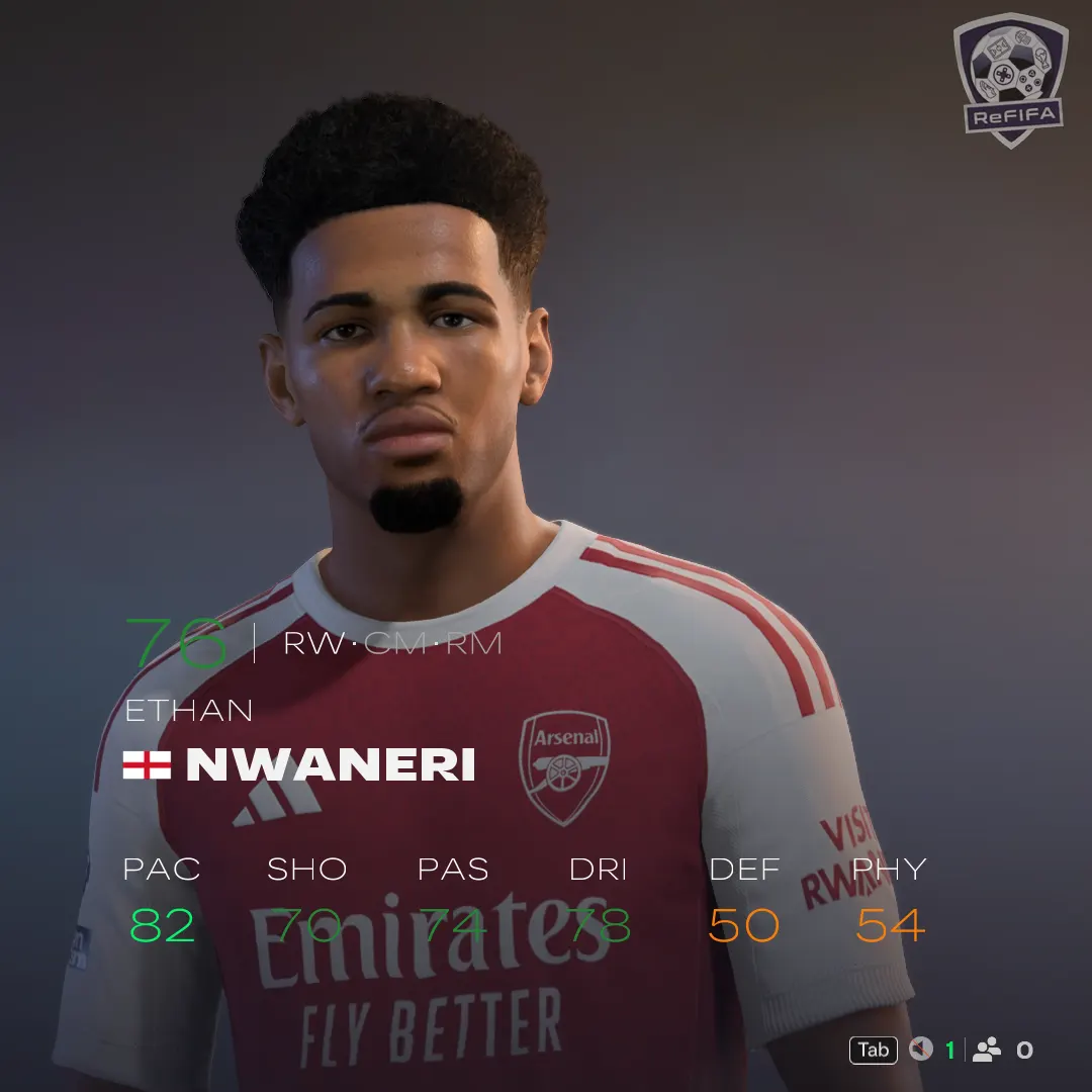 Ethan Nwaneri (Arsenal) is one of England’s brightest prospects, capable of operating as an RW, CM, or RM.