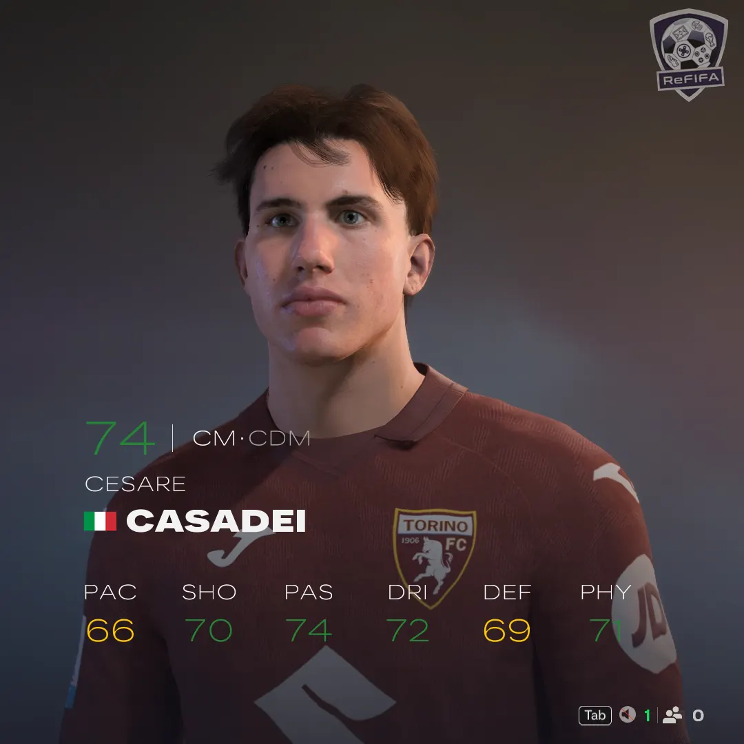 Casadei is a complete midfielder with strength, passing, and finishing ability. The 22-year-old Italian CM/CDM starts at 74 overall and grows to 83 potential.