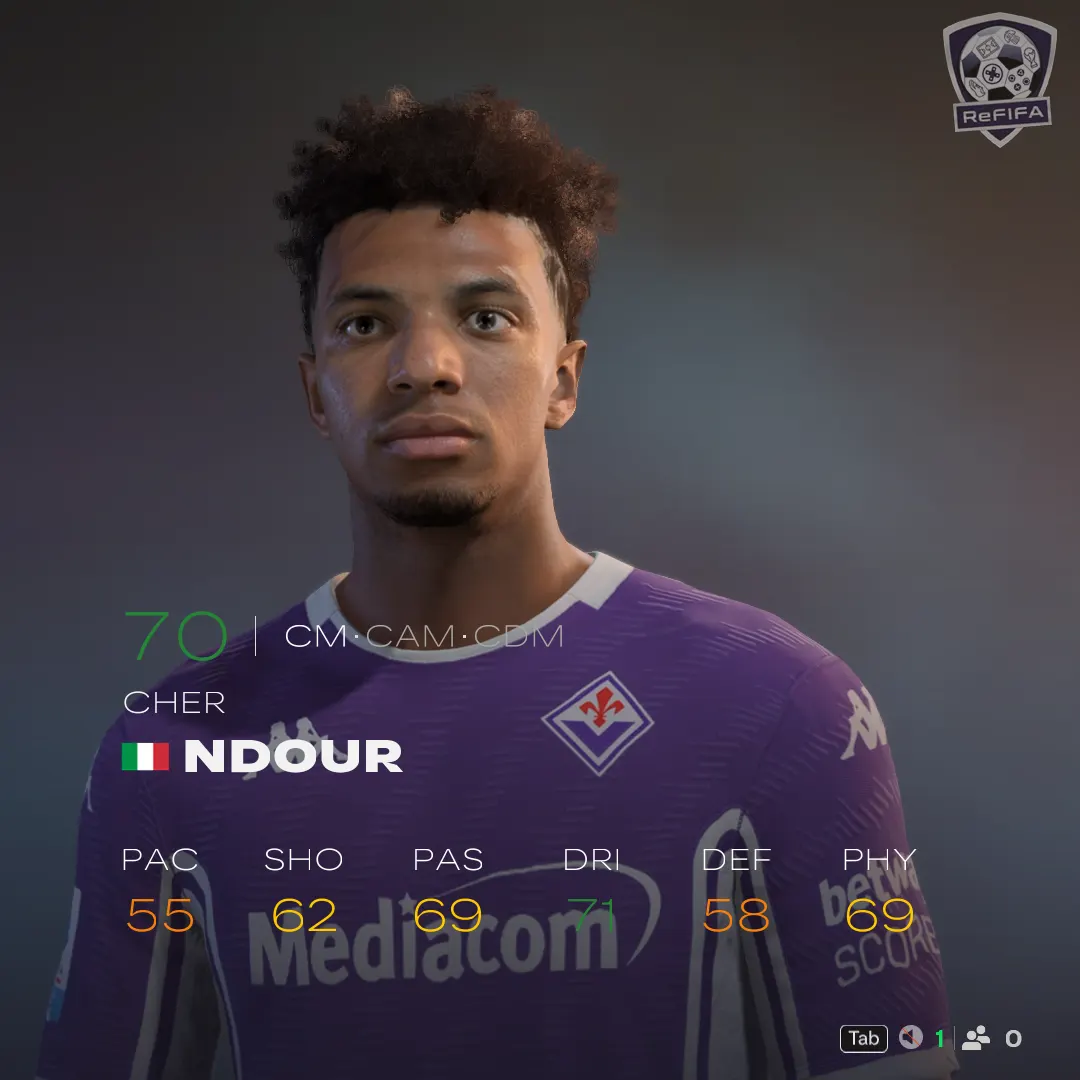 Diouf’s versatility makes him one of Serie A’s most complete young midfielders. The 22-year-old can play CM, CDM, or CAM, holding a 75 overall and 81 potential.