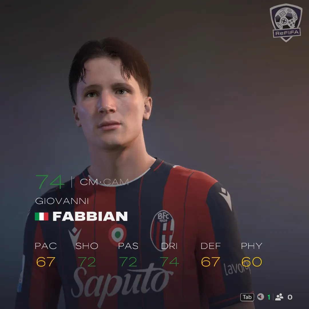 Fabbian, aged 22, is one of Bologna’s most promising young stars. The central midfielder has a 74 overall and 83 potential.