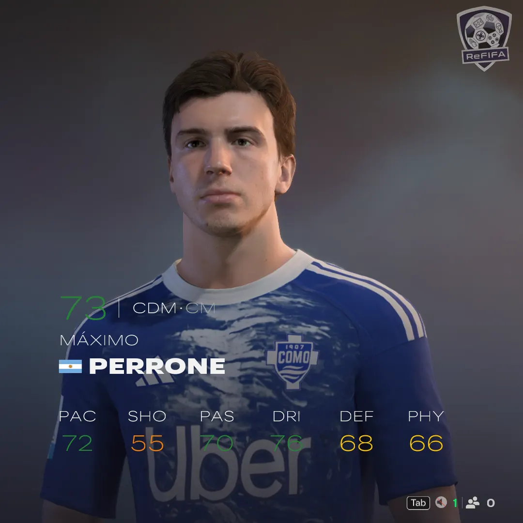 Perrone offers composure and passing quality from deep midfield. The 22-year-old Argentine CDM/CM starts with a 73 overall and 83 potential.
