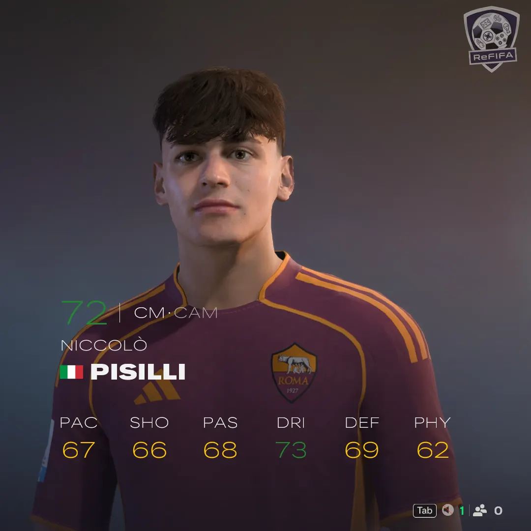 Pisilli is one of the brightest Italian midfielders in the game. At 20, he has a 72 overall and an impressive 84 potential.