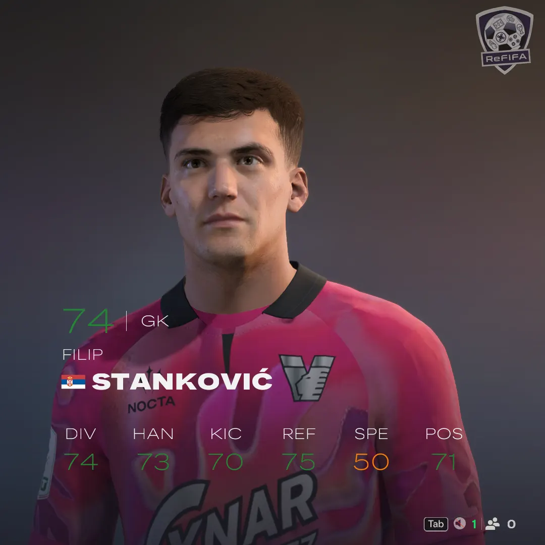 Filip Stanković (Venezia – Serie B) stands out with a strong 74 Overall Rating at just 23 years old, paired with an 82 Potential.