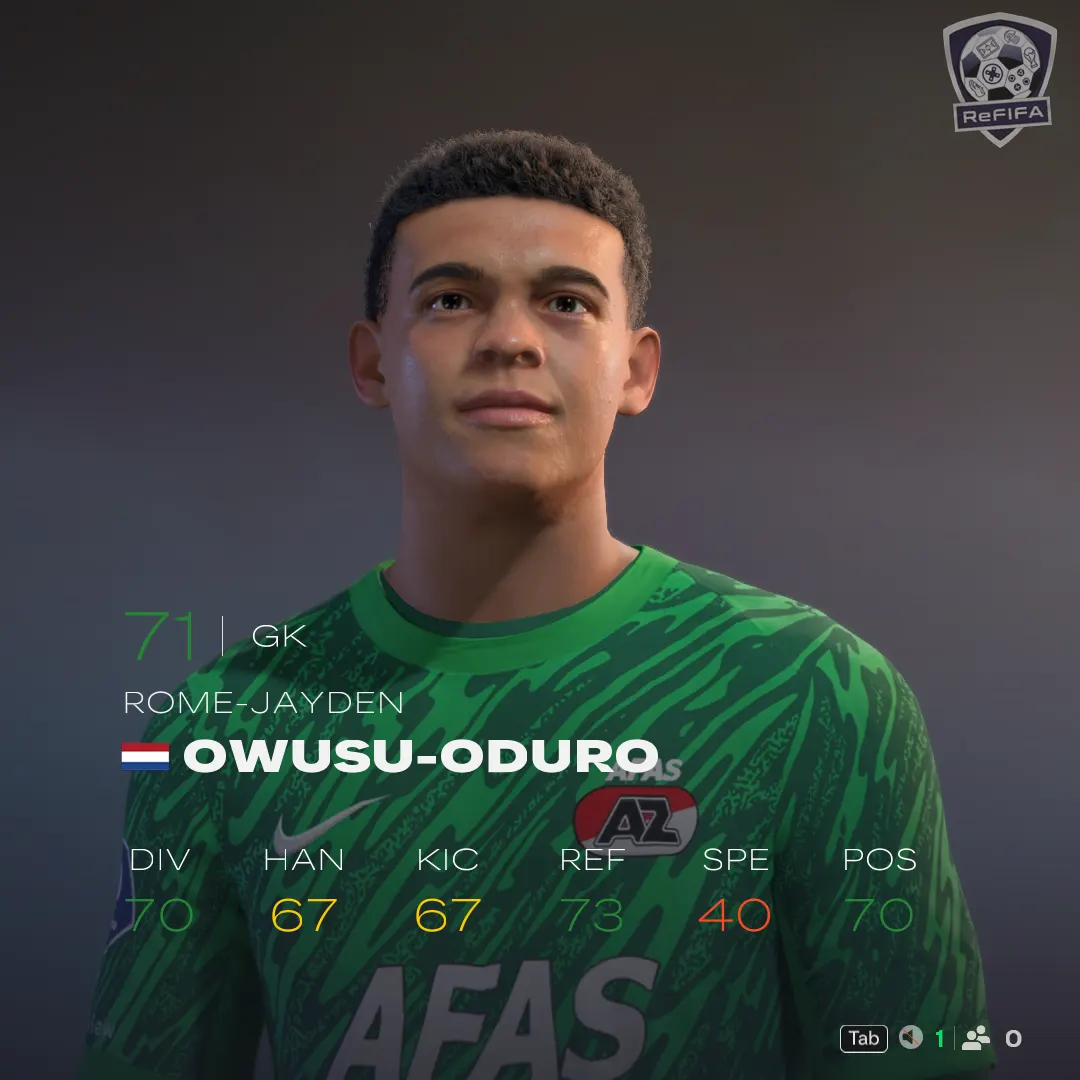 At only 20 years old, Owusu‑Oduro (AZ Alkmaar – Eredivisie) offers one of the best growth curves on this list, rising from 71 Overall Rating to 84 Potential.